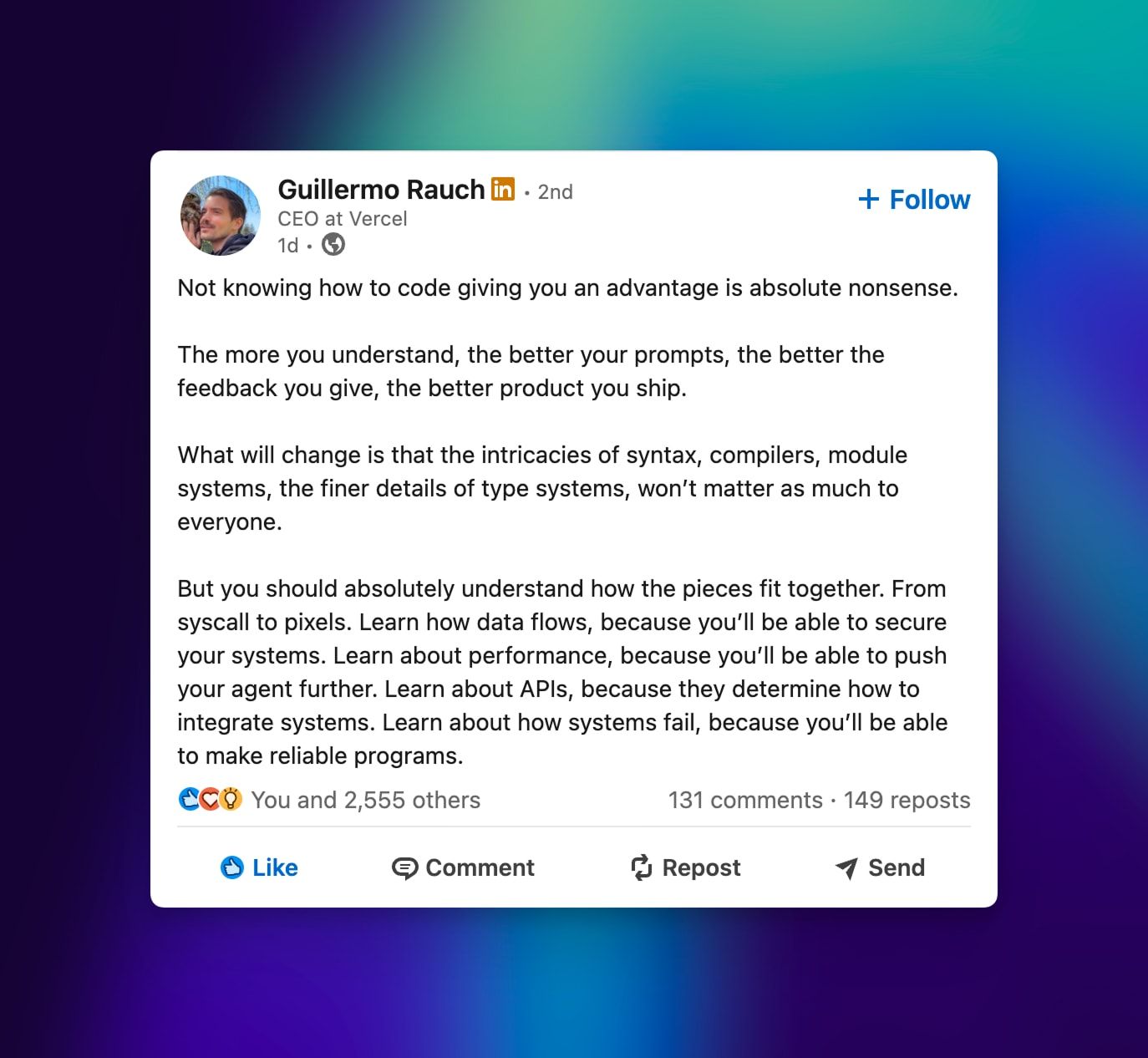 This is why high-level engineers are utilizing AI in the most advanced and meaningful ways right now. It's not because they're smarter—it's because the tools were built for their environment. Code literacy gives you access to the full surface area of what AI can do, not just the chat window.